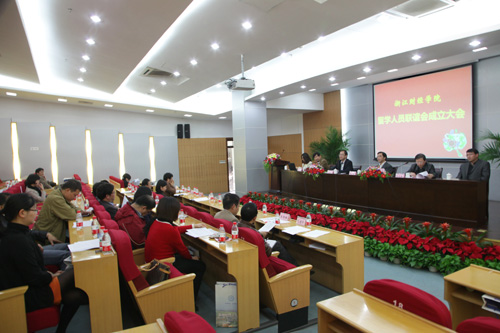 11月13日下午,浙江财经学院留学人员联谊会成立大会在行政楼二楼报告厅隆重举行。浙江省侨联副主席、省留联会会长张维仁,浙江省侨联经科维权部副部长章红波莅会。校党委副书记朱永康,党委委员、副校长钟晓敏,浙江省有关高校侨联(留联)代表、校党委统战部部长钟平、民主党派和知联会负责人及代表等出席会议。