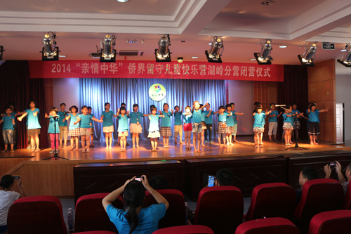 在今天下午的闭营仪式上,侨界的领导们纷纷发表演讲,表达了对我们湖岭分营的慰问和感谢,其中温州市侨联秘书长林春雷着重表扬了我们湖岭队的队员都很有责任感都很优秀。我们每一个队员都能认真负责地完成自己的任务,坚守自己的岗位,照顾好那些孩子。林秘书长的这些话深深激励了我们的志愿者,让我们志愿者的付出都得到了肯定和鼓励。在闭营仪式的表演环节中,小朋友们的表现真的让我们很开心。尤其是小班《第一课》的合唱和中班的舞蹈表演,这两个节目得到了台下的领导家长和观看的小朋友的一致好评。而且这次演出的顺利完成,不仅让我们看到了孩子们的努力付出,而且也是对我们志愿者辛苦付出的最好回报。