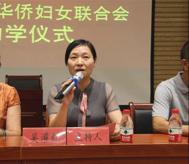 法国华商会会长卓旭光,法国华人华侨妇女联合会会长潘笑黎,市委统战部常务副部长李邦生,法国华人华侨妇女联合会班子成员,省、市、县委统战部相关处室领导,县教育局相关领导,五都小学百名师生参加仪式,县委常委、统战部长吴灌红主持仪式。