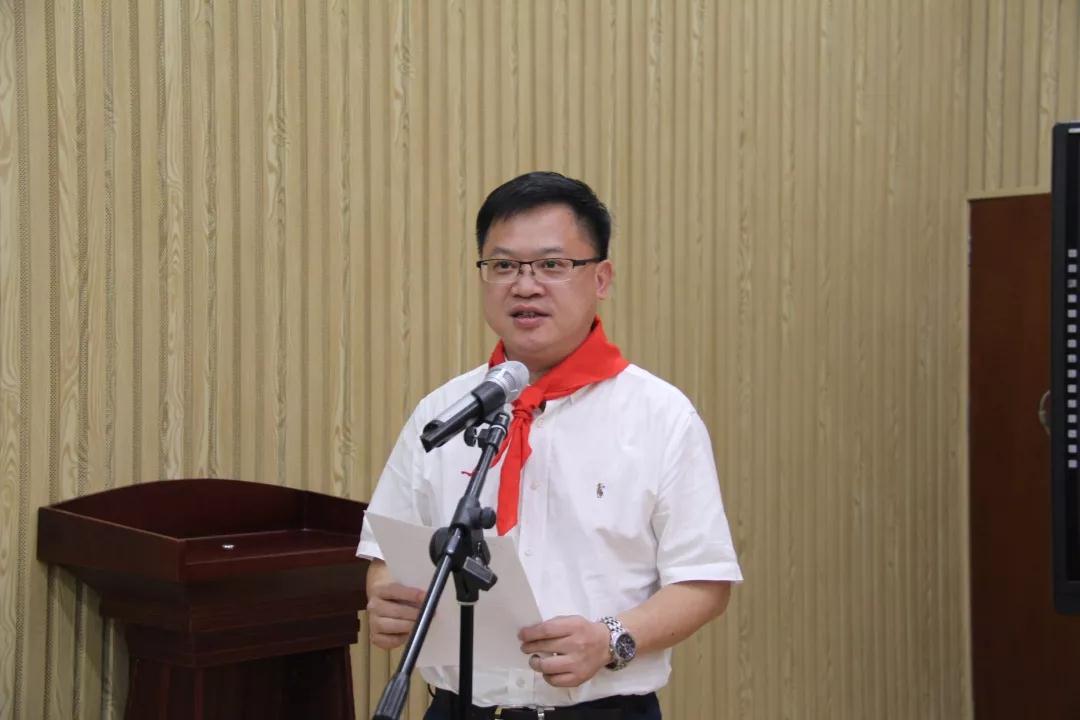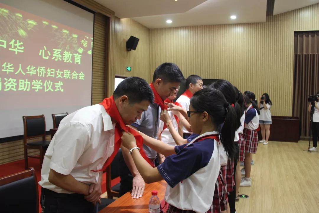仪式上,少先队员为出席仪式的领导和嘉宾佩戴红领巾