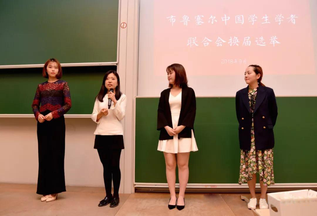 吕晋西西(左二)当选第35届布鲁塞尔学联主席,另三位为新当选副主席