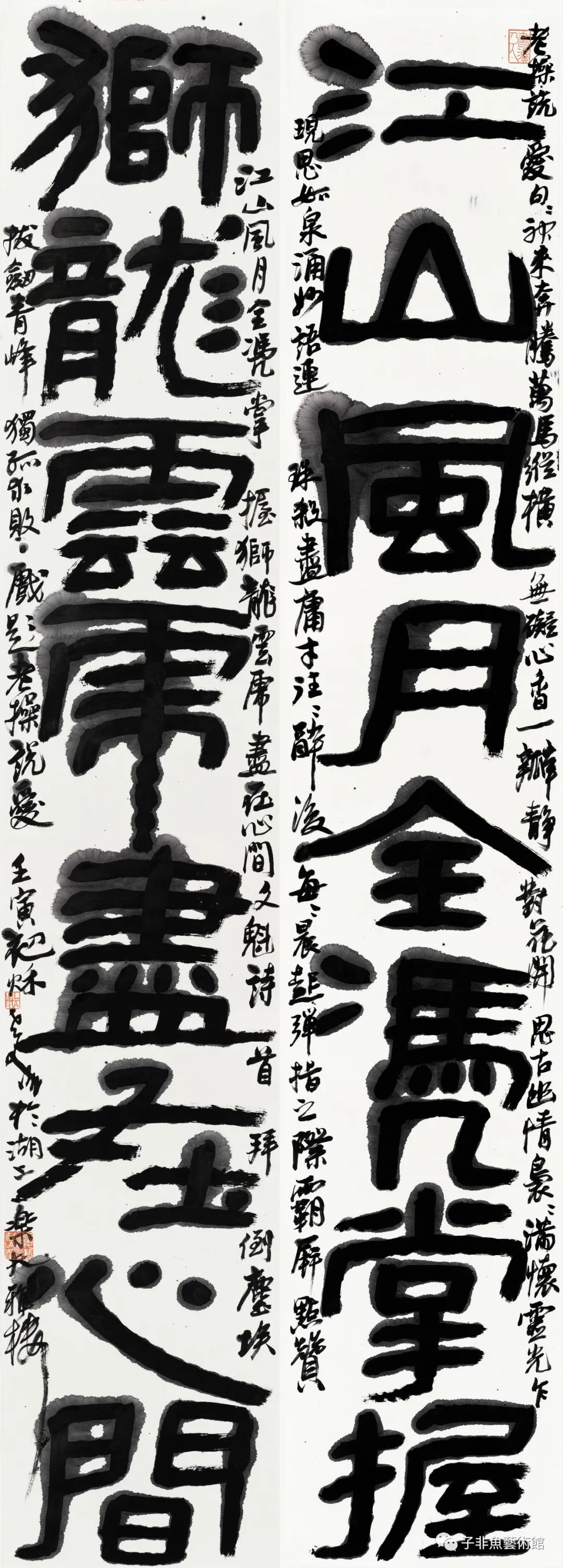 我一直觉得,与《石门颂》等汉代名碑相比,《大开通》更显简古朴拙,也更加锋锐劲健。如果说《石门颂》是“酒”,《大开通》就是“曲”,带有一种生拙简朴的活泼与力道。从这个展览中,我们惊喜地看到,在对《大开通》经年累月的观摩与钻研中,在这场横跨两千年的对话中,张爱国找到了打开“现代书法”大门的钥匙。