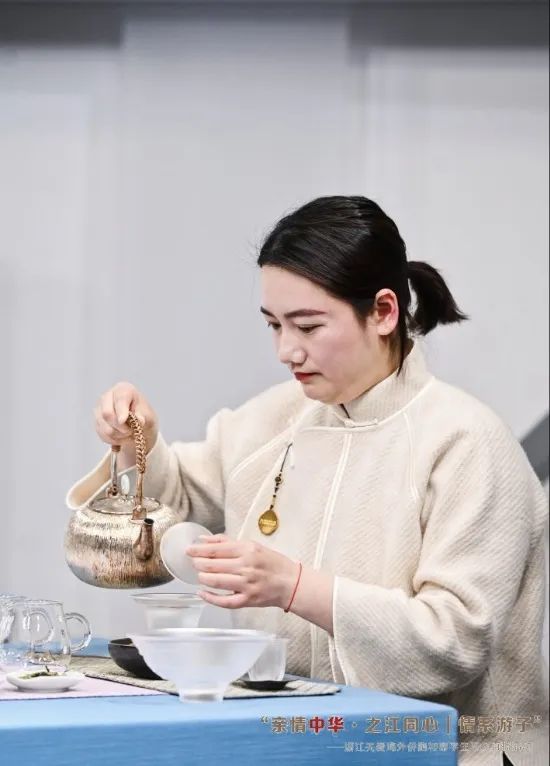 现场还请到了中国茶叶博物馆许泽梅茶艺大师工作室领衔人,浙江省第一届茶艺大赛金奖,浙江工匠许泽梅为大家现场泡茶,赏茶艺之美,品国韵芬芳,大家在赏心悦目的茶艺展示中,感受传统文化的独特魅力。