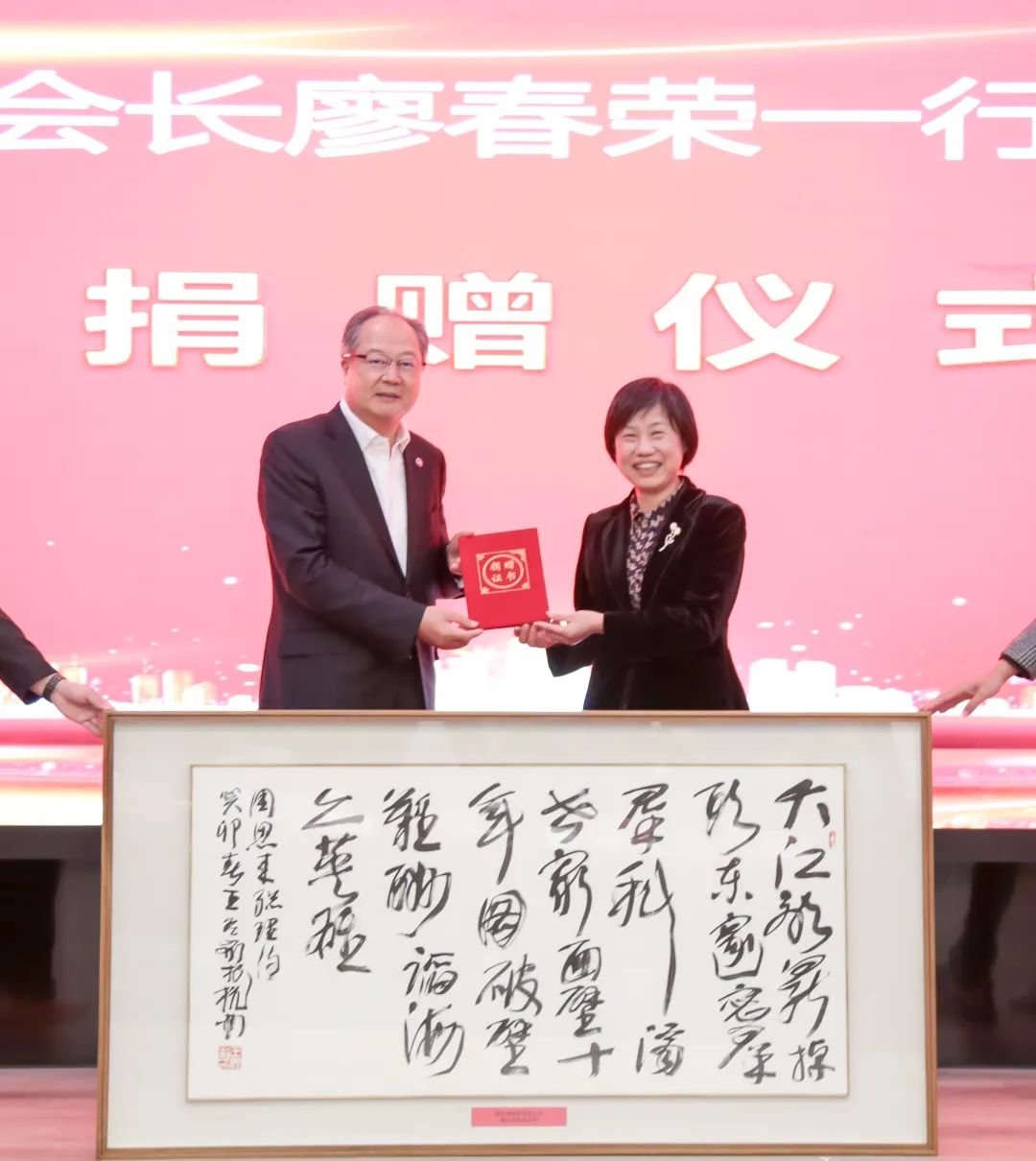 期间,省侨商会向省侨联捐赠了书法作品。
