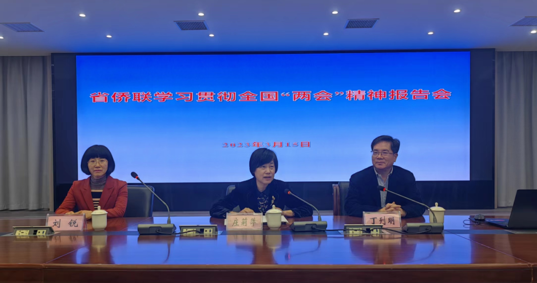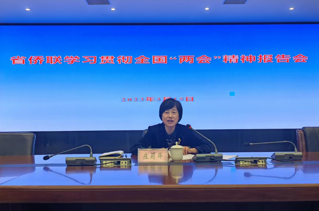 3月15日下午,省侨联、杭州市侨联联合举办学习贯彻全国“两会”精神报告会。浙江省侨联党组书记、主席庄莉萍主持会议并讲话。全国政协委员、省侨联兼职副主席、浙江贝达药业股份有限公司董事长丁列明和全国人大代表、浙江清华长三角研究院生态环境研究所所长刘锐分别传达全国“两会”精神。