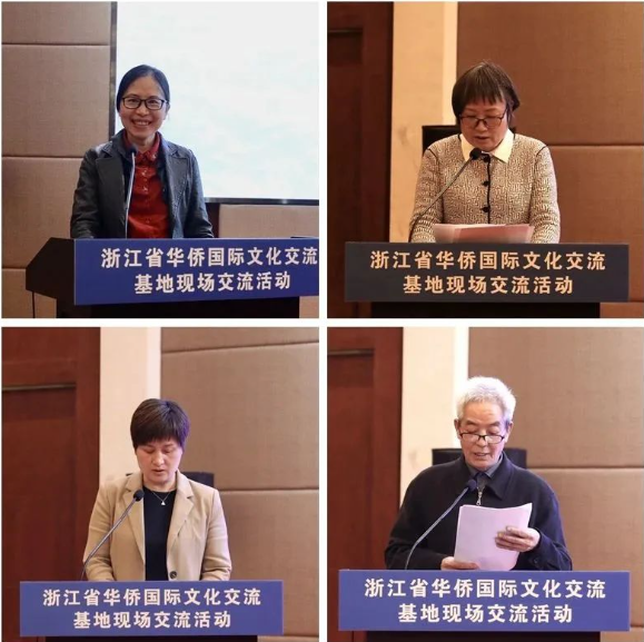 浙商院、西泠印社、宁海十里红妆文化园、杭州市侨联、柯桥区侨联等13家国家级、省级基地和侨联单位代表就华侨国际文化交流基地在坚定文化自信、传播中华文化、讲好中华文明故事和推进基地建设等方面的经验做法和思路作交流发言。