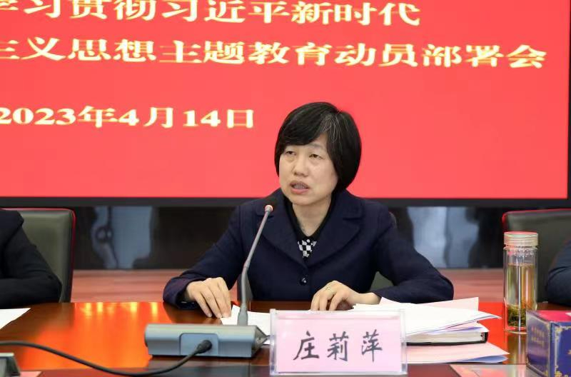 庄莉萍要求,要把握重点关键,高标准高质量抓好主题教育各项工作,在理论学习上求深入见实效,在调查研究上求深入见实效,在助推发展上求深入见实效,在检视整改上求深入见实效,在建章立制上求深入见实效。