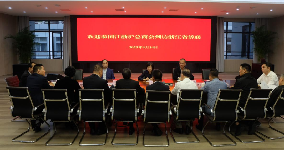 4月14日,泰国江浙沪总商会、乌克兰基辅浙江同乡会、乌克兰敖德萨中国商会到访浙江省侨联。省侨联党组书记、主席庄莉萍,省侨联一级巡视员张维仁与侨领们见面交流。
