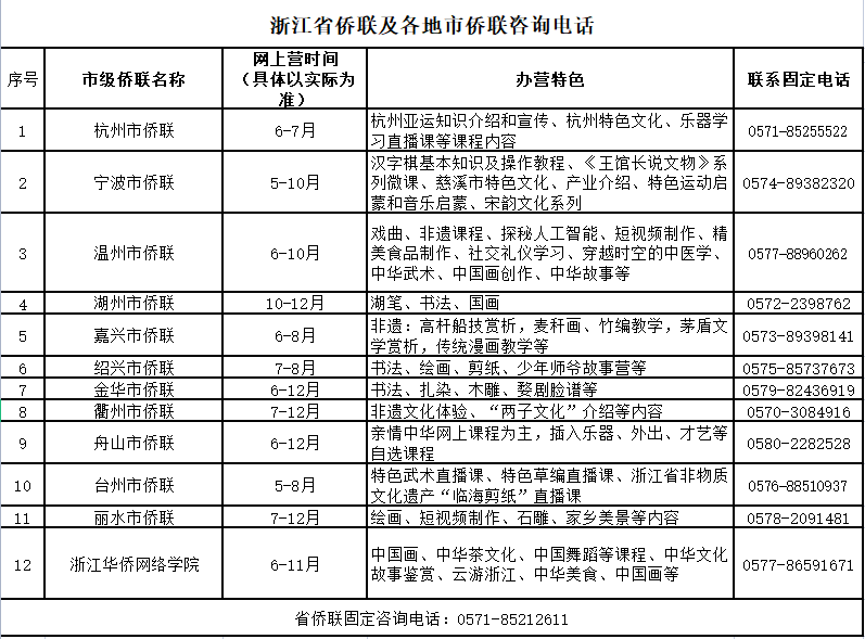 附件:浙江省侨联及各地市侨联咨询电话