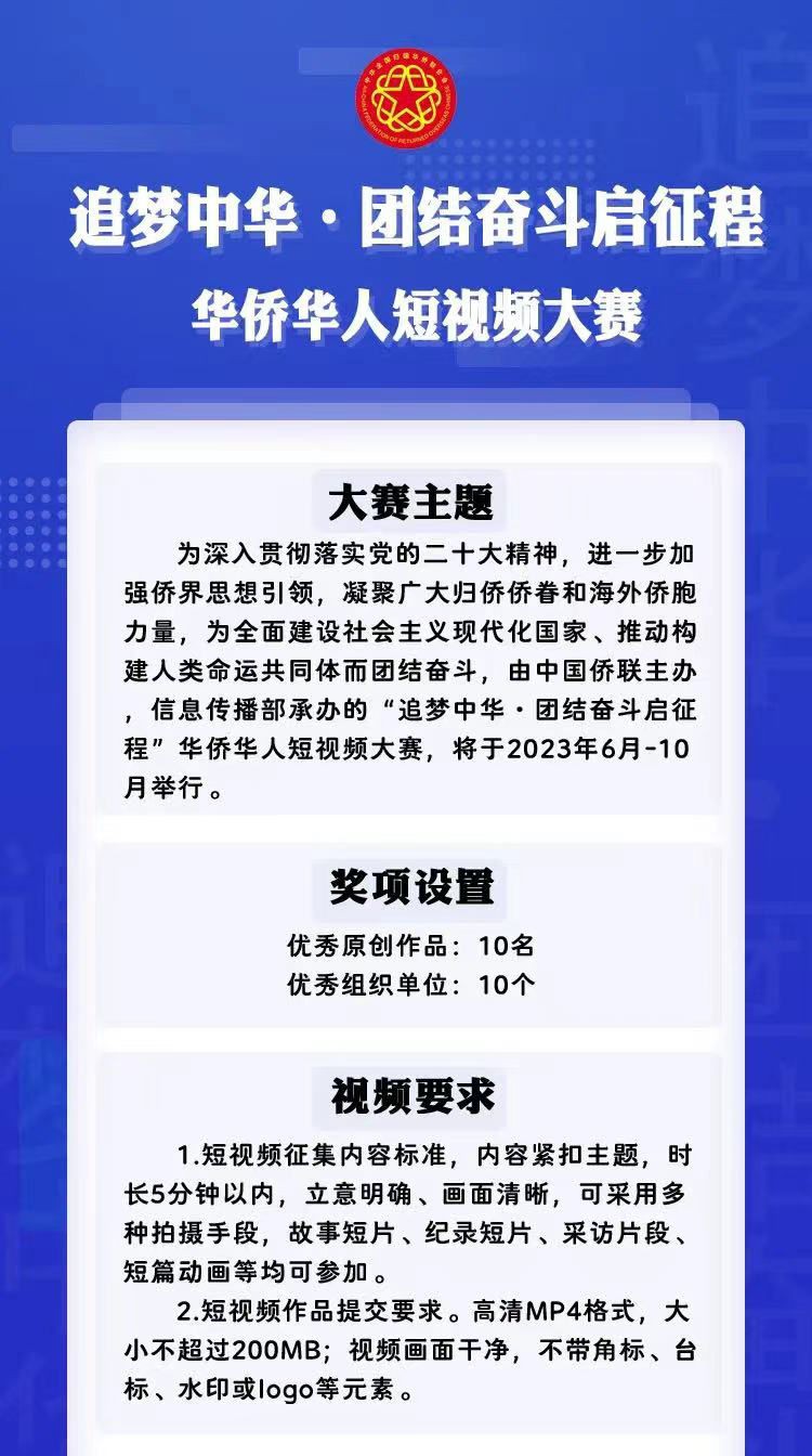 “追梦中华·团结奋斗启征程”华侨华人短视频大赛开始啦!
