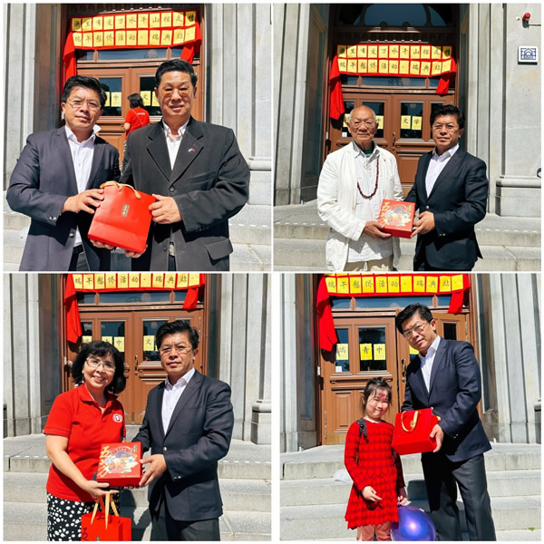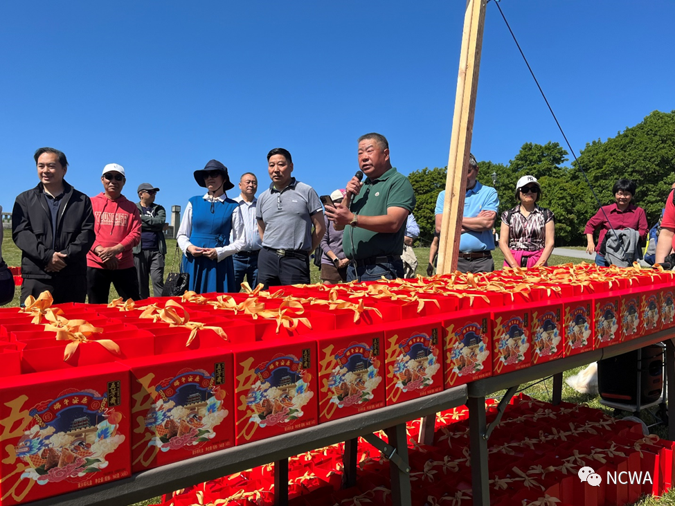 瑞典中国和平统一促进会执行会长、瑞典华人总会执行主席叶沛群发放粽子礼盒