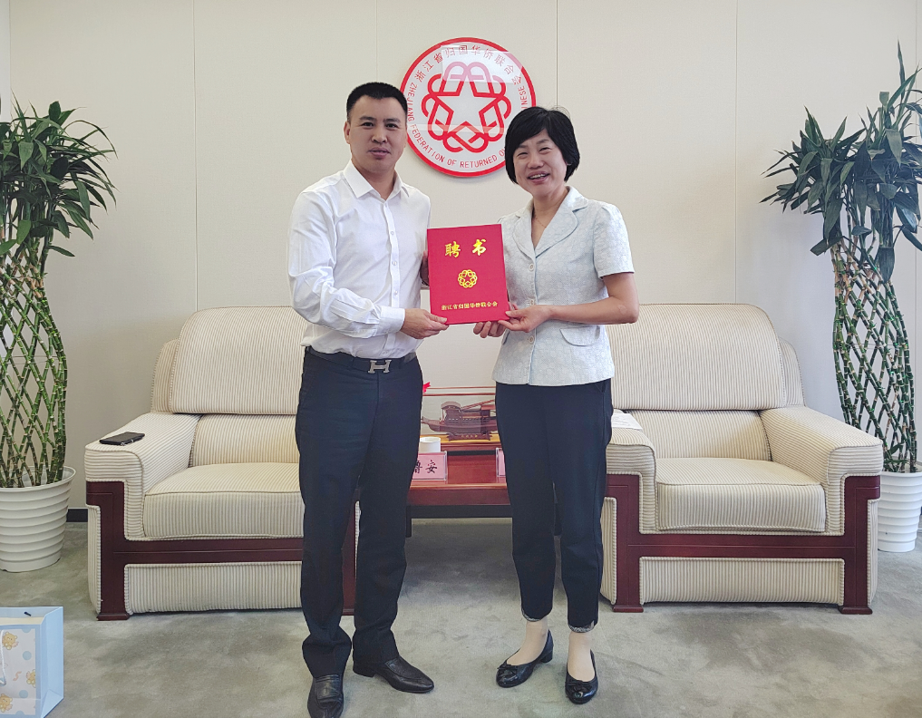 庄莉萍为金鲁安颁发了省侨联第十届海外委员的聘书,并合影留念。