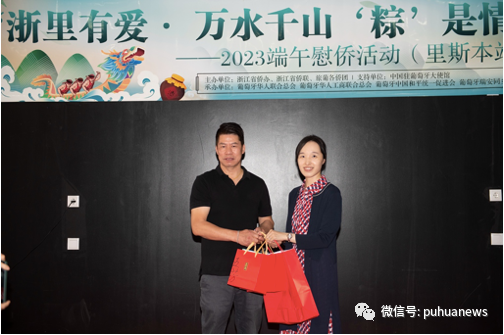 6月18日下午,“浙里有爱·万水千山‘粽’是情”端午慰侨活动葡萄牙站在里斯本亚洲商城正式启动。中国驻葡萄牙大使馆公参陈晓玲、领侨处主任夏晚晴等使馆领导,葡萄牙中华总商会会长蔡文显、葡萄牙华人联合总会会长王小伟等三十余位旅葡侨团代表出席活动。