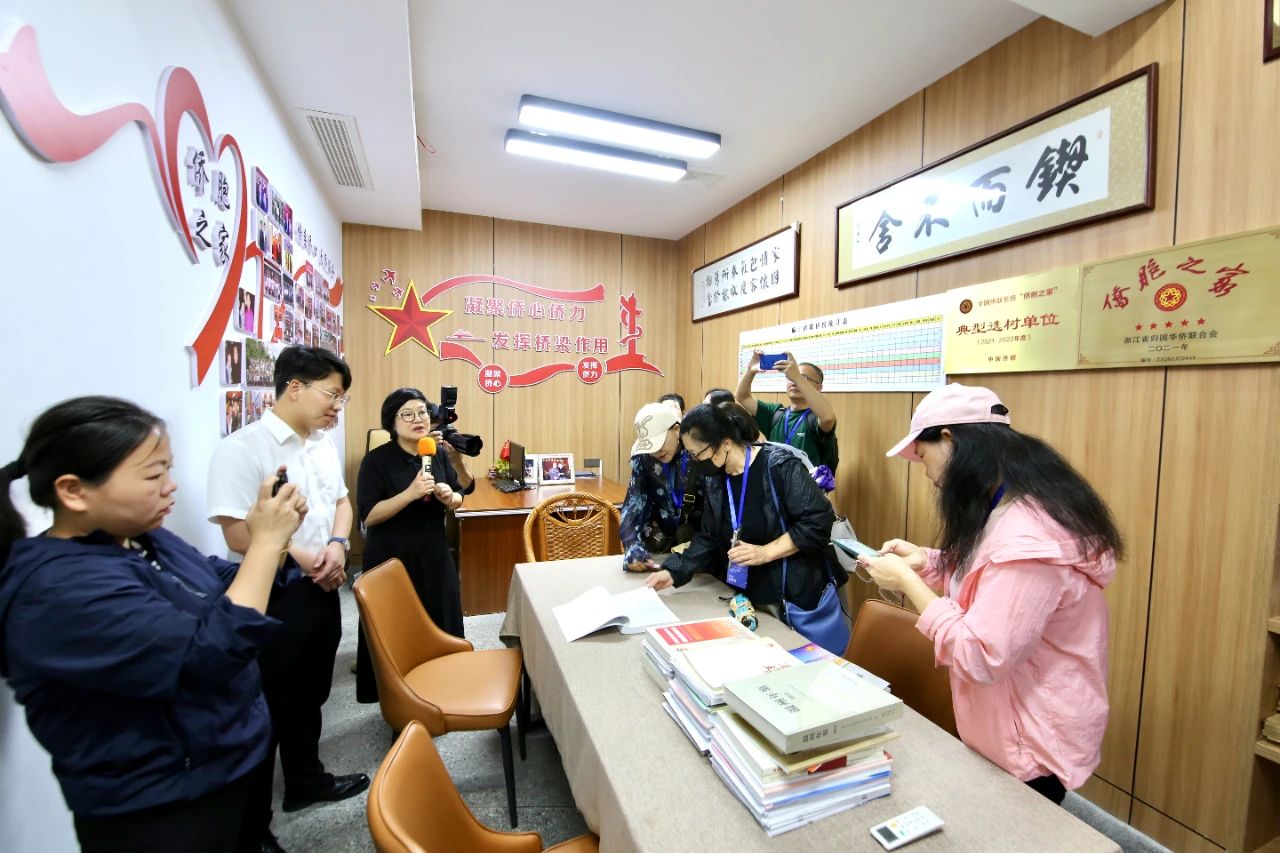 鹿城山福镇临江侨联“侨胞之家”是温州加强基层侨联组织建设工作的典型范例,采访团一行深入侨联各个展厅,聆听关于侨联阵地建设、侨资源作用发挥、侨力量在乡村振兴中所起成效等的介绍,历史悠久且丰富多元的侨文化令采访团的成员为之动容。