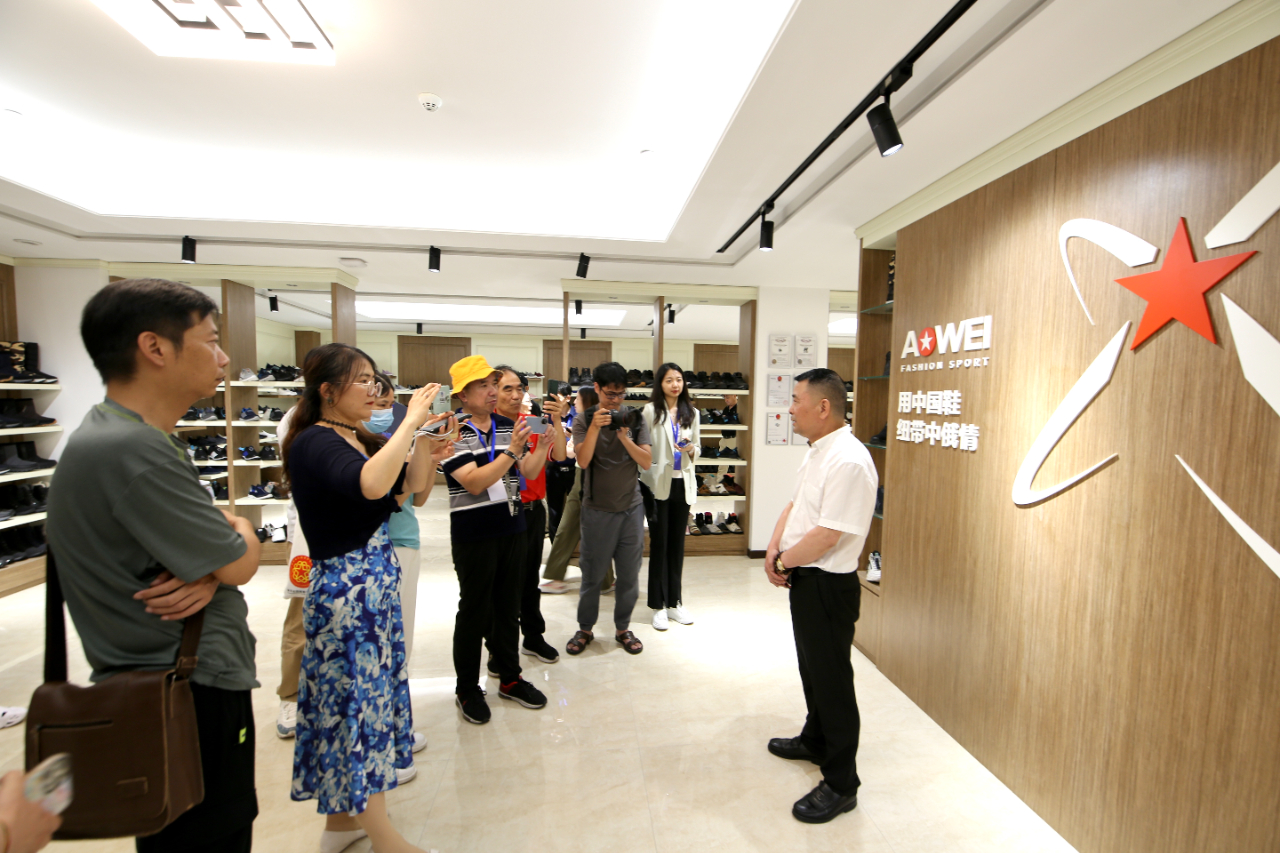 在鑫尔泰鞋业有限公司,采访团一行考察企业的高效精益生产流水线,通过负责人蔡建林的介绍,大家了解了企业赴俄罗斯投资办厂的艰辛历程、抢抓“一带一路”发展机遇,积极实践“互联网+工厂”新模式,实现转型升级的成功经验及积极谋划“义新欧”中欧班列临时堆场落地瑞安的新举措。