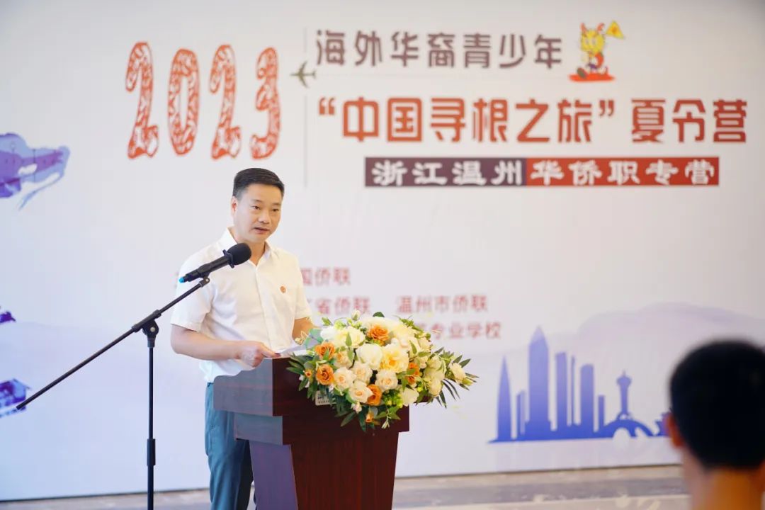 7月7日,由中国侨联主办,浙江省侨联、温州市侨联、温州华侨职专承办的2023年“中国寻根之旅”夏令营浙江温州华侨职专营正式开启。浙江省侨联副主席、温州市侨联主席南品仁,市侨联副主席路驰,温州华侨职专党总书记、校长徐健,温州华侨职专副校长胡金发出席活动。来自意大利、西班牙、美国、匈牙利的19名华裔青少年参加活动。