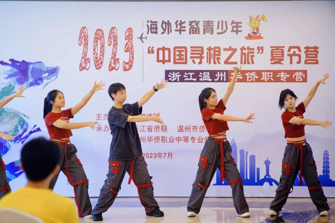 今年恰逢亚运年,亚运会是亚洲文明交流的重要舞台,是中华文明展示的极佳机会。温州华侨职专的阳光少年带来《动感亚运》健身韵律操,为杭州亚运会加油,赢得海外营员们的阵阵掌声。