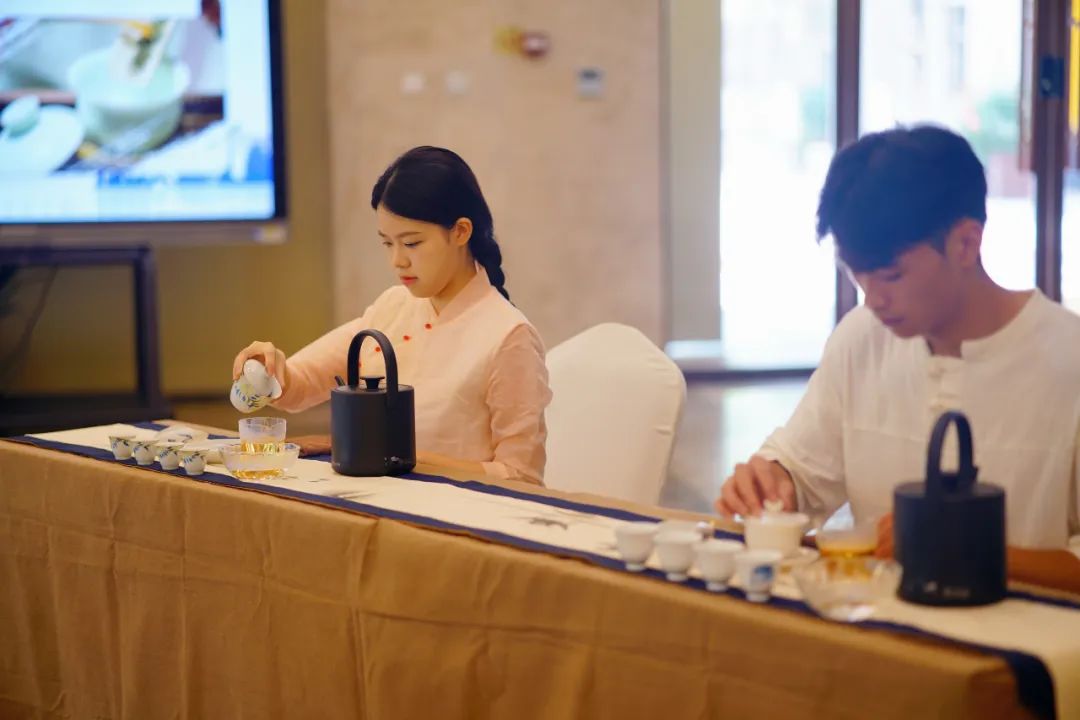 有朋自远方来,中国人自古以茶为食、以茶会友、以茶示礼,是百姓日常生活的重要内容,也成为中国与国际社会友好往来的重要载体。温州华侨职专营傅依汝、邱鑫欣同学为大家展示茶艺表演。