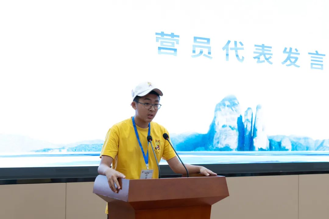 来自美国的何禹辰同学代表营员们发言,他用朴素真挚的语言表示,非常喜欢江山的美食美景,期待此次家乡之旅的快乐时光。