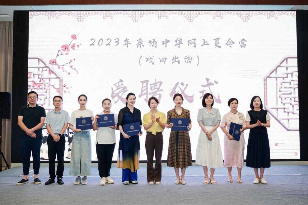 活动现场举行了“亲情中华·为你讲故事”网上夏令营授旗仪式,并为“戏曲出海”首批戏曲志愿者授课老师颁发聘书。